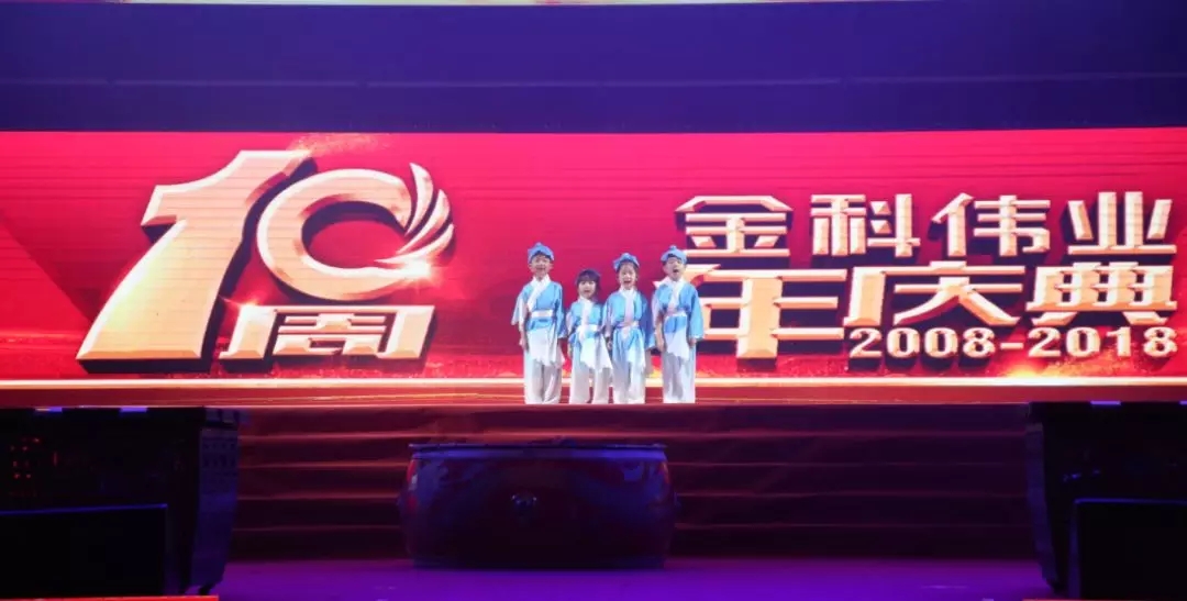 朗朗的童声朗诵着金科伟业的企业文化,开启了金科伟业十周年的庆典